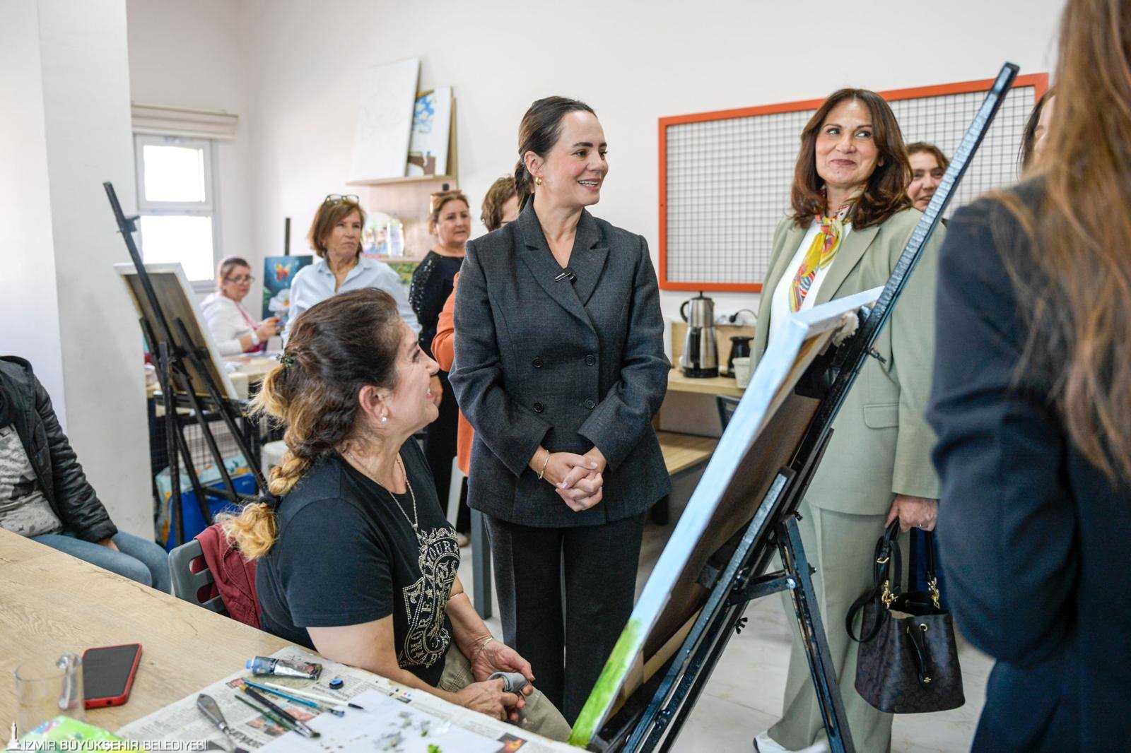 Öznur Tugay ve beraberindeki başkan eşleri, kültür merkezindeki dikiş, resim, ahşap boyama, müzik ve çeşitli el sanatları kurslarını ziyaret etti. Kursiyerlerle sohbet eden başkan eşleri, kadınların üretim süreçlerini yerinde inceledi.