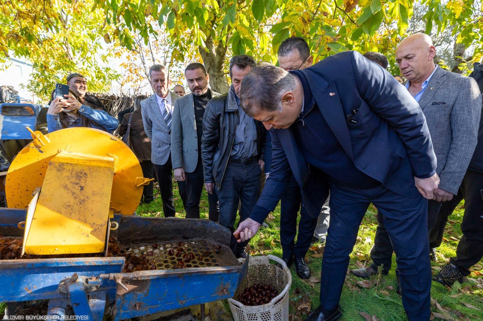 Üreticilerle sohbet eden Başkan Tugay, kestanede görülen hastalıklar, rekolte ve kaliteye ilişkin bilgiler aldı. Kestanenin bölge için önemli bir ihracat ürünü olduğunu vurgulayan Tugay, “Kestane çok değerli, gözümüz gibi korumamız gereken bir ürün. Büyükşehir Belediyesi olarak hastalığa dirençli ağaçlar dağıtarak ve hastalıklarla mücadele ederek üreticilerimize destek oluyoruz. Bu çalışmayı kararlılıkla sürdüreceğiz” dedi.