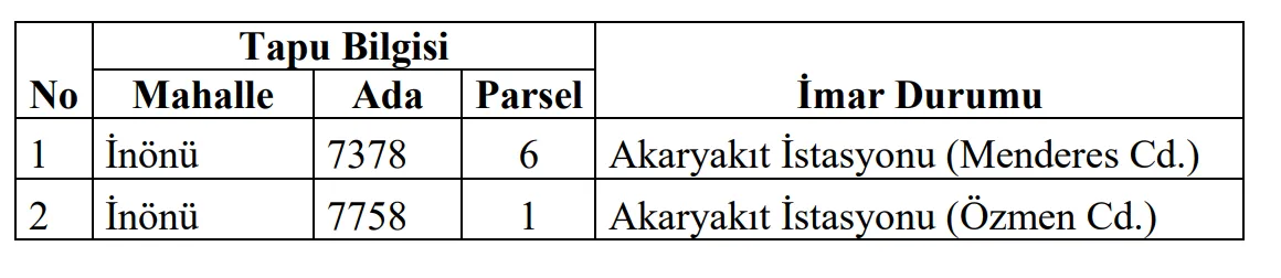 Bazı taşınmazlar için imar planı değişiklikleri yapıldı ve askı süreci başlatıldı. Ayrıca belediyeye ait 7378 Ada 6 Parsel ile 7758 Ada 1 Parsel numaralı taşınmazların da SGK borçlarına karşılık satışı planlanıyor. Bu iki taşınmazın imar planındaki kullanım alanı akaryakıt istasyonu olarak belirtiliyor.