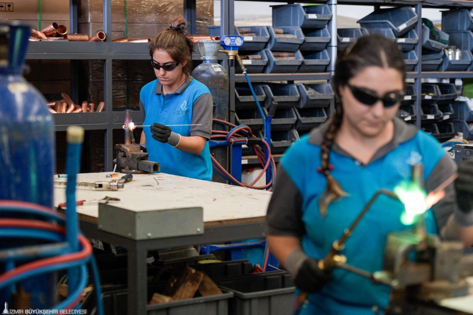 İzmir Büyükşehir Belediyesi, UNDP iş birliğiyle yürüttüğü Meslek Fabrikası programlarını sürdürüyor. Kadın ve gençlere yönelik istihdam projeleri devam edecek.