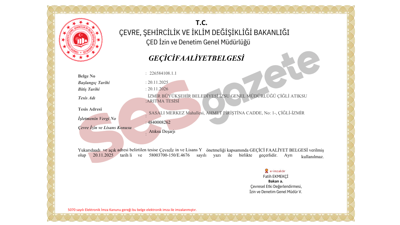 İZSU tarafından yapılan kapsamlı yenilemeler sonrası Çevre, Şehircilik ve İklim Değişikliği Bakanlığı’nın denetimlerinden geçen tesis, önceki gün Geçici Faaliyet Belgesi’ni yeniden aldı.