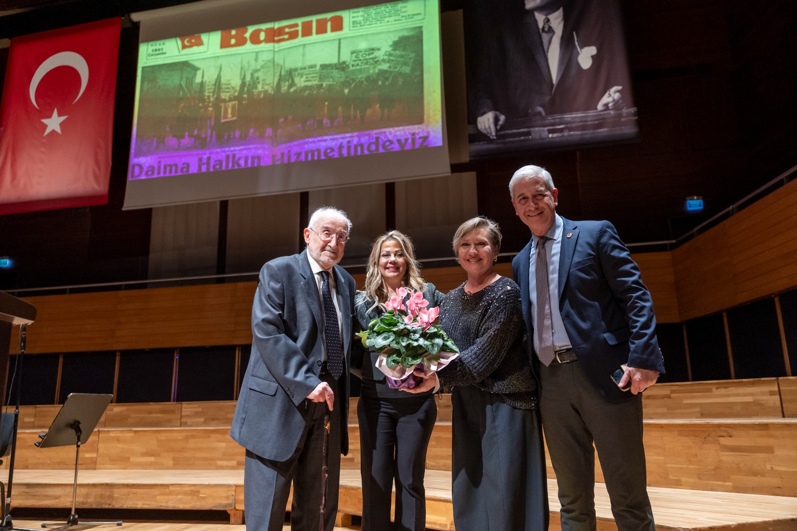 10 Ocak’ın yalnızca bir kutlama günü olmadığını vurgulayan Gappi, 212 sayılı Basın Yasası sürecini hatırlatarak, gazetecilerin “Basın” gazetesiyle sergilediği direnişin mesleki onurun simgesi olduğunu söyledi. Bu süreci birebir yaşamış duayen gazeteci Öcal Uluç da sahnede anılarını paylaştı.