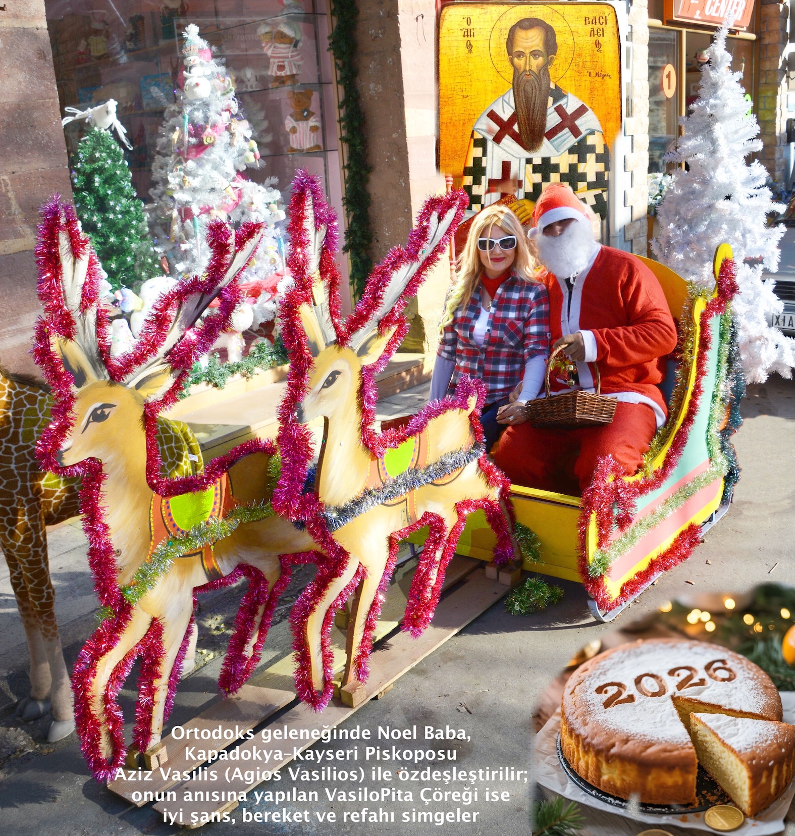 Çavuşoğlu, Ortodoks dünyasında Noel Baba figürünün Batı’dakinden farklı olduğuna dikkat çekti. Ortodokslarda Noel Baba, Demreli Aziz Nikola değil; Kapadokya-Kayseri Piskoposu Aziz Vasilis (Agios Vasilios) idi. Bu nedenle hediyeler Noel’de değil, 1 Ocak’ta verilirdi.