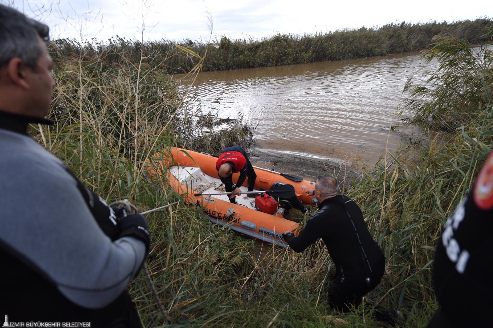 İzmir Büyükşehir Belediyesi İtfaiye Dairesi Başkanlığı, AFAD, Jandarma, Sahil Güvenlik ve Komando ekipleri ile İzmir Emniyet Müdürlüğü Deniz Limanı Şube Müdürlüğü’ne bağlı kurbağa adamlar, 707 personel, 43 dalgıç ve 5 dron desteğiyle 14 kilometrelik hat boyunca çalışmaları sürdürüyor.