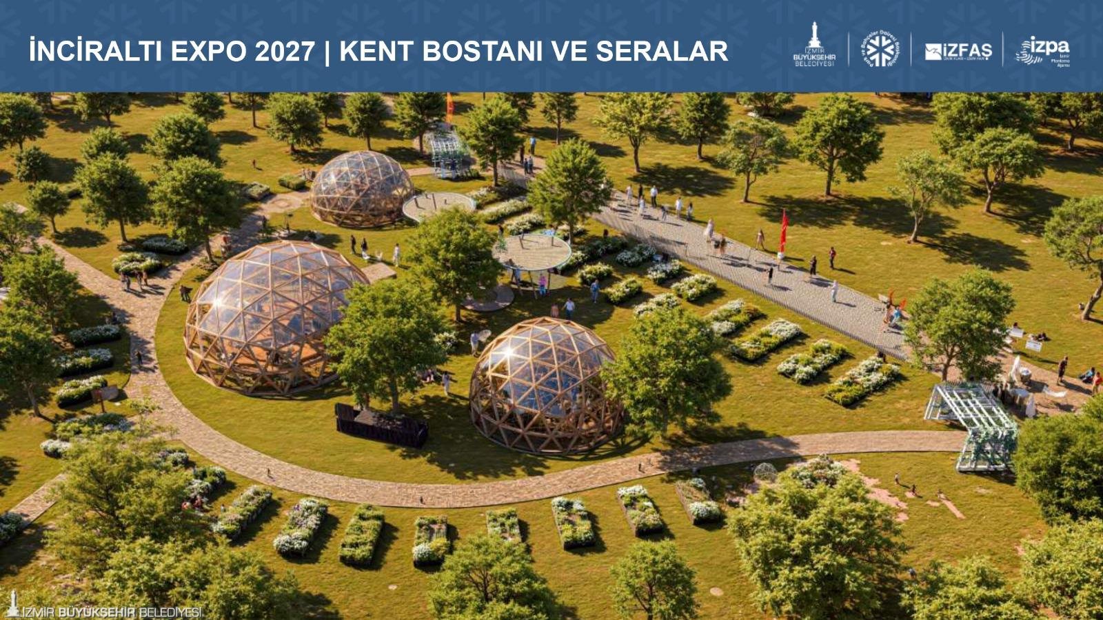 İnciraltı Kent Ormanı’nda kurulacak 100 bin metrekarelik EXPO alanında uluslararası bahçeler, tematik sergi alanları, yarışmalar ve bilgi merkezleri yer alacak.