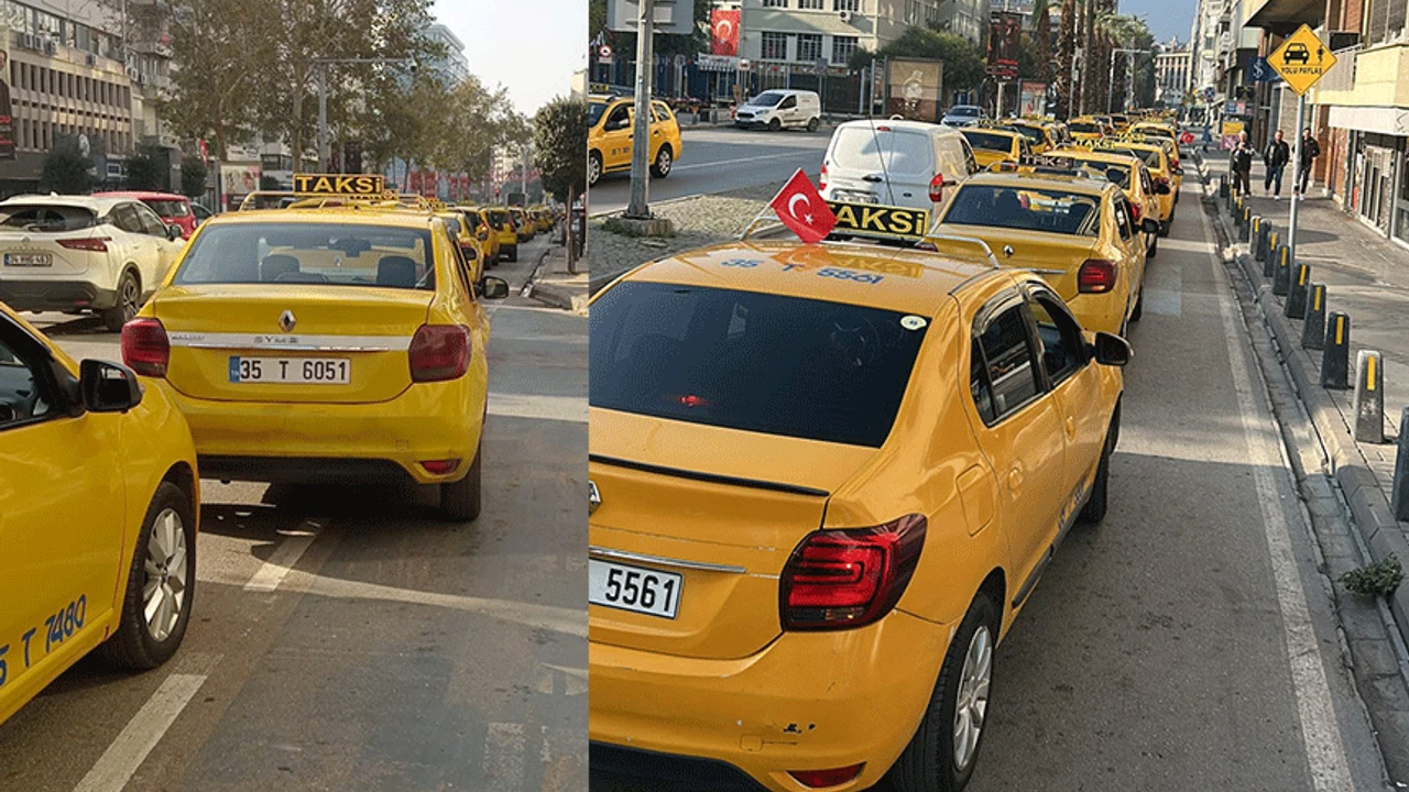 İzmir’de bir grup taksi şoförü, korsan taşımacılığa dikkat çekmek ve sektördeki mağduriyeti gündeme taşımak amacıyla konvoy oluşturdu. Sabah saatlerinde Alsancak Stadı önünde toplanan şoförler, araçlarına Türk bayrağı astı, Şehitler Caddesi’nden Liman Caddesi’ne ve Cumhuriyet Meydanı’na kadar konvoy yaptı. Sahil şeridinde tek sıra halinde araçlarını park eden şoförler, kontak kapatarak eylemlerini sürdürdü.