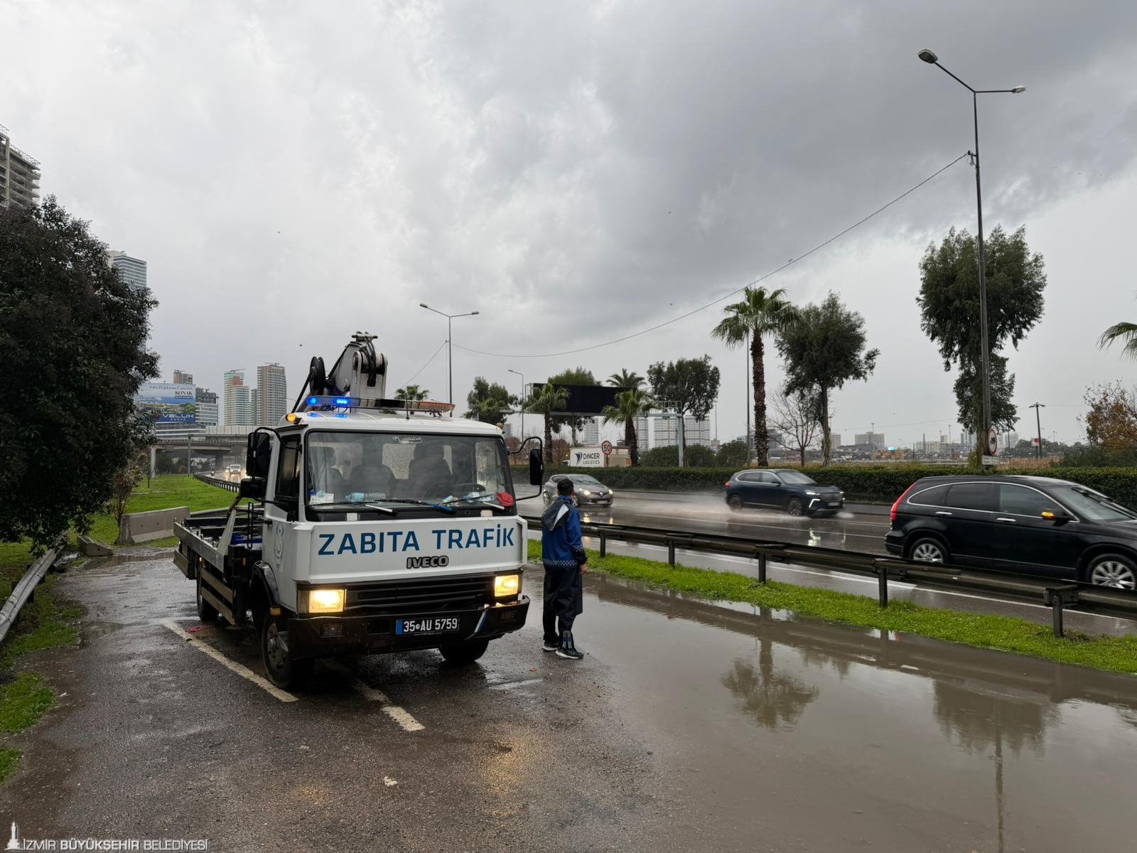 İzmir’de gece başlayan ve sabah saatlerinde etkisini artıran kuvvetli sağanak yağış, sel ve fırtına riskini beraberinde getirdi. İzmir Büyükşehir Belediyesi, Afet İşleri Dairesi Başkanlığı Afet Koordinasyon Merkezi (AKOM) koordinasyonunda, yüzlerce araç ve binin üzerinde personel ile sahaya çıkarak önlem aldı.