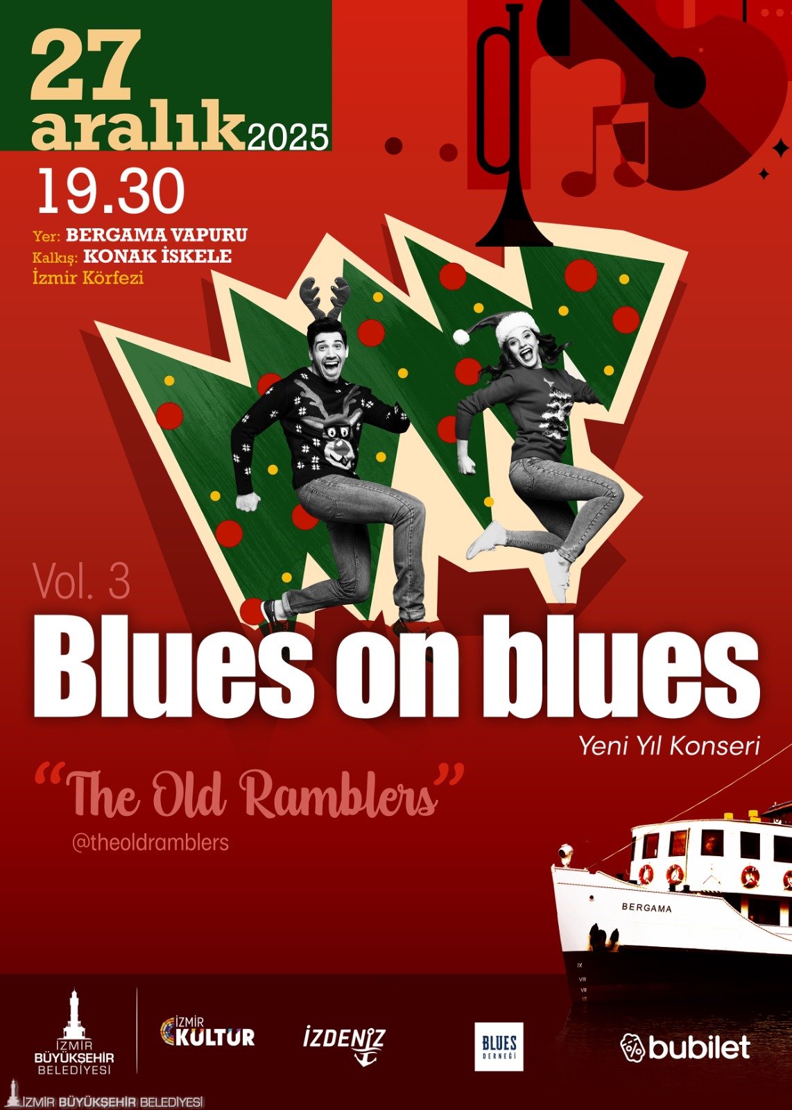 “Blues on Blues” etkinliği, 27 Aralık Cumartesi günü saat 19.30’da Konak İskelesi’nden hareket edecek Bergama Vapuru’nda gerçekleştirilecek. İzmir Körfezi’nin eşsiz manzarası eşliğinde düzenlenecek gecede, katılımcılar yılın yorgunluğunu müzikle geride bırakacak.