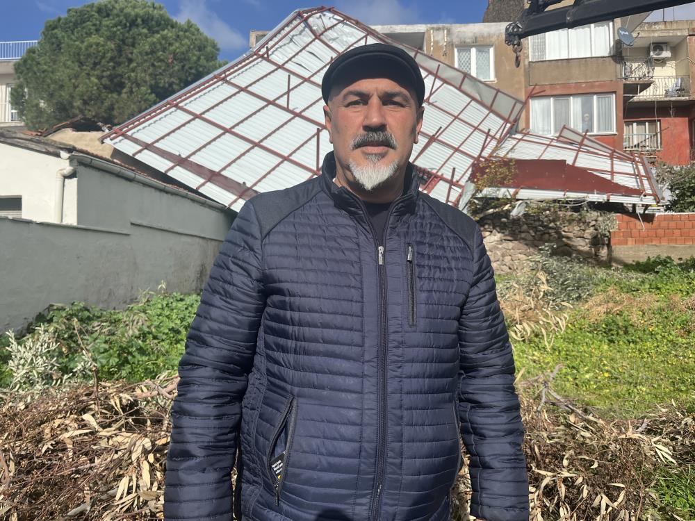 Olay anını anlatan ev sahibi Rüştü Kaplan, “Bir anda gürültüyle uyandık, ev üstümüze mi uçuyor, deprem mi oluyor diye düşündüm. Balkona çıktığımda çatının komşunun avlusuna düştüğünü gördüm. Komşunun kliması kopmuş, duvarı zarar görmüştü. Bizim garajın duvarında da hasar var. Çatıyı yeniden yapacağız” dedi.