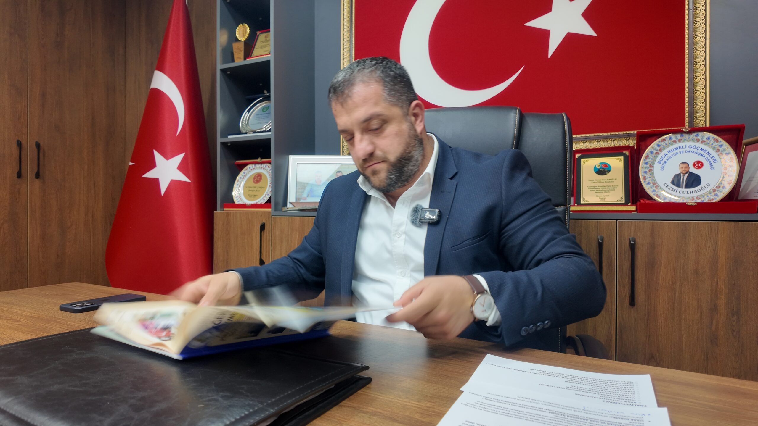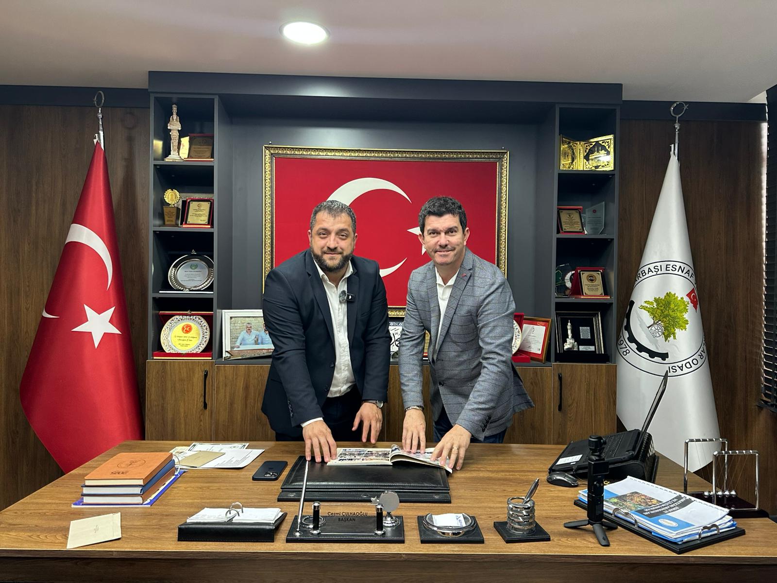 Pınarbaşı esnaf odası çok güzel bir bina. Her tarafa Türk bayraklarıyla donatılmış. Burası 1978 yılında esnaf camiasındaki büyüklerimiz tarafından kurulmuş. Göreve geldiğimizde eksikler vardı, giderdik. Toplantı salonunu yaptık, binayı komple yeniledik. Teknolojiyi güncelledik, araba aldık. Tüm bunları esnaf odamızın parasıyla değil, bize güvenmiş dostlarımızın desteğiyle yaptık. İmece usulü, el birliğiyle binamızı bu hale getirdik.