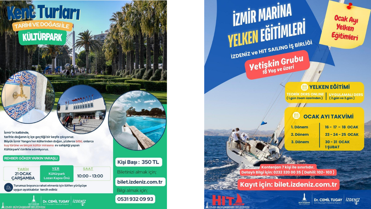Körfez yolculuğunun ardından Kemeraltı’nın tarihi sokaklarını kapsayan Kemeraltı Turları, 14 Ocak ve 28 Ocak 2026 Çarşamba günleri 10.00–15.00 saatleri arasında düzenlenecek. 25 kişi kontenjanlı turun ücreti 350 lira olarak belirlendi. Etkinlik 12 yaş ve üzeri katılımcılara açık olacak.